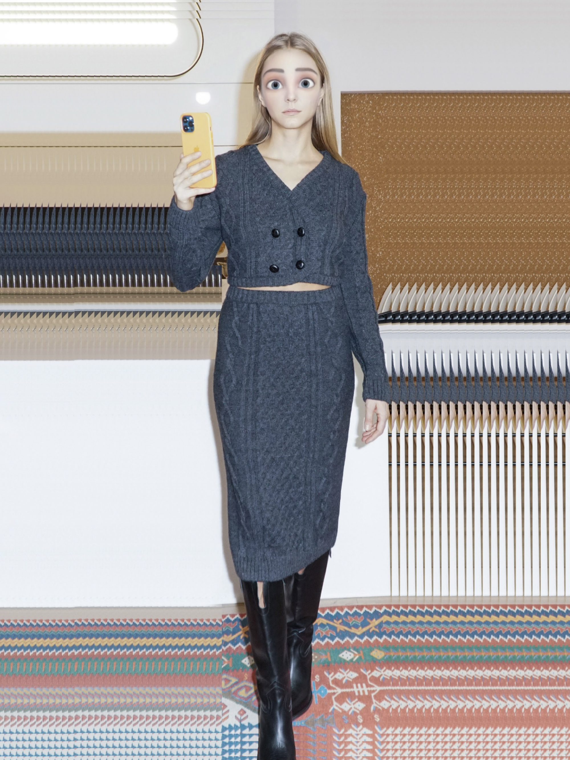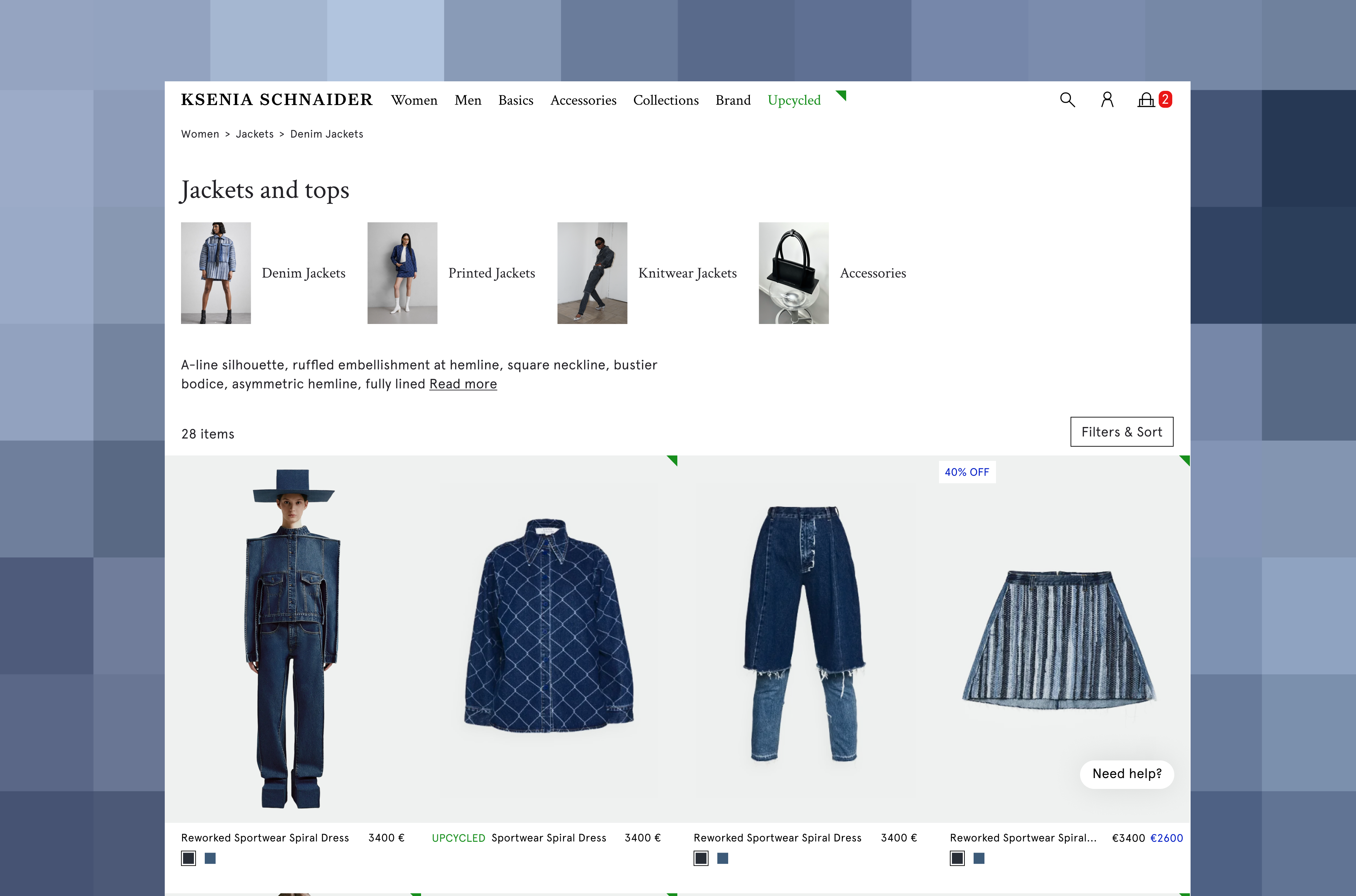 Quite by accident, when enlarging a picture of Ksenia Schnaider's denim clothing, a screenshot was taken with blue-blue pixels, which, one way or another, have always been present in the canonical elements of the brand's clothing, which is famous for its patchwork.
